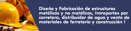 Diseño y Fabricación de estructuras metálicas y no metálicas, transportes por carretera, distribuidor de agua y venta de materiales de ferretería y construcción !